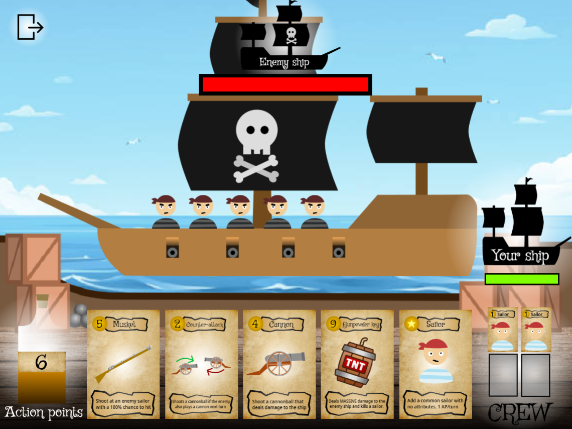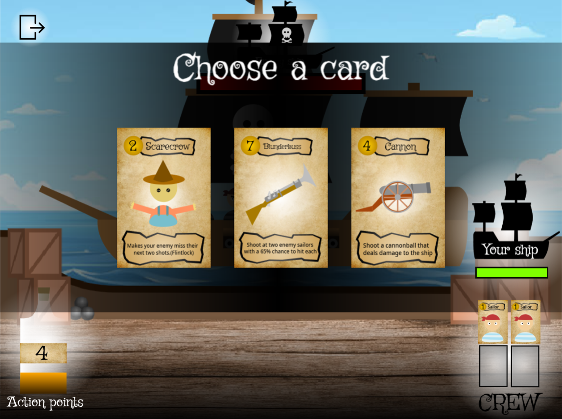 This is a turn-based pirate card battler where your crew is your lifeline—and your greatest resource.